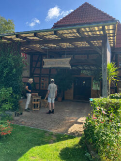 Die wunderbare Laudatio hielt Martin Ganzkow, langjähriger Leiter des Glashauses, die man HIER nachlesen kann. Auf seiner Website www.kunstprech.de findet man sämtliche Texte von ihm zu den Künstler:innen, die im Glashaus unter seiner Leitung ausgestellt haben. Nicht unerwähnt möchte ich an dieser Stelle auch die tolle Betreuung durch Sven Schwarze und sein Team vom „Café im Glashaus“ lassen, wo es den besten Kuchen und nettesten Service gibt.