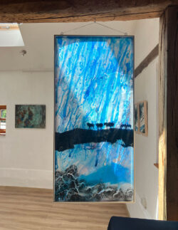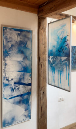 Im Sommer 2024 habe ich im Glashaus Derneburg ausgestellt – ein wunderschöner heller Ort nicht nur für meine Plexiglasbilder –  gegenüber vom Schloss Derneburg, das seit einigen Jahren die Hall Art Foundation beherbergt, Europas größte private Kunstsammlung.