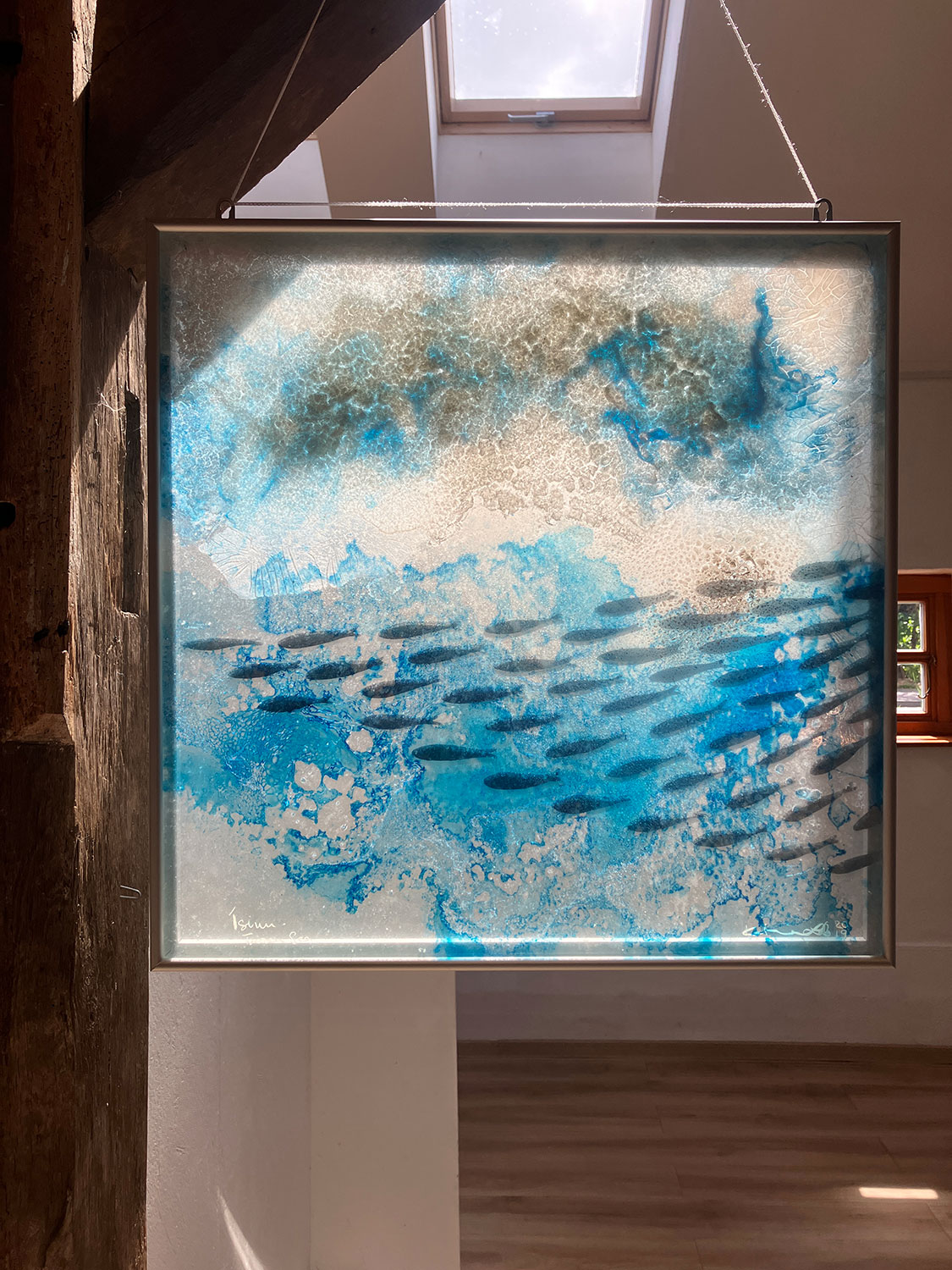 Im Sommer 2024 habe ich im Glashaus Derneburg ausgestellt – ein wunderschöner heller Ort nicht nur für meine Plexiglasbilder –  gegenüber vom Schloss Derneburg, das seit einigen Jahren die Hall Art Foundation beherbergt, Europas größte private Kunstsammlung.