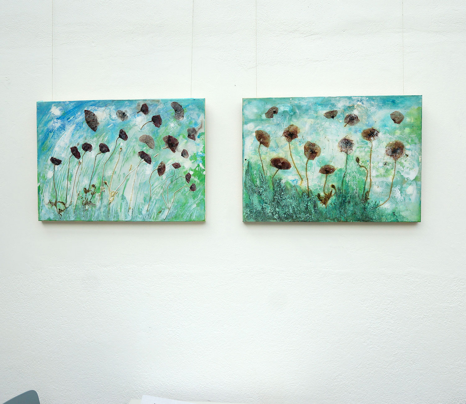 So entstanden ihre Plexiglasarbeiten, die einen Blick wie durch vereistes Glas oder verregnete Scheiben auf mysthische Orte vermitteln.