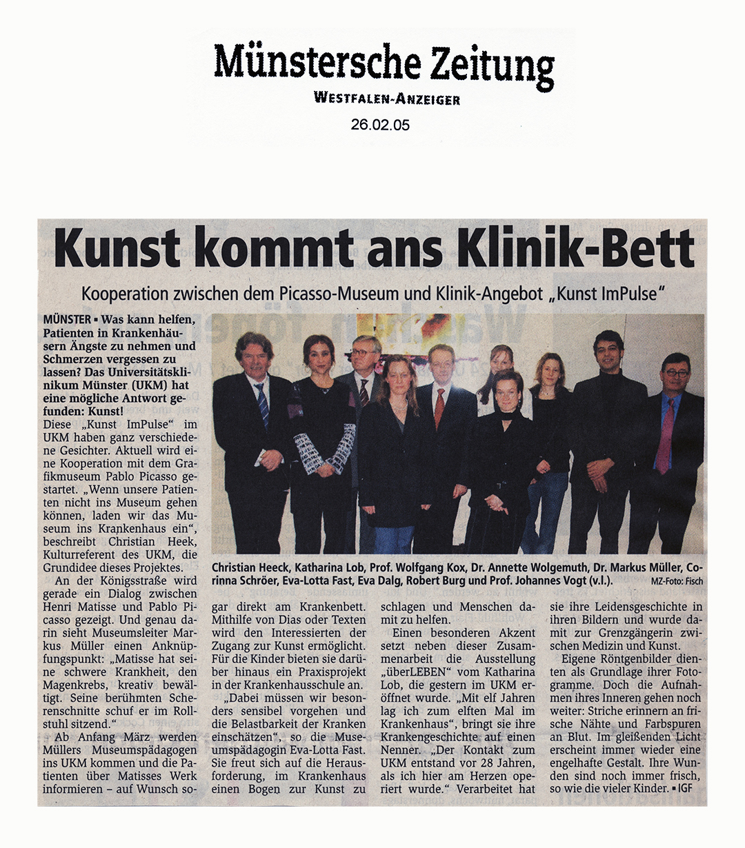 In Kooperation mit dem Picasso Museum Münster wurden dort zeitgleich Scherenschnitte von Matisse gezeigt, der krankheitsbedingt lange ans Bett gefesselt war und dort besser schneiden als malen konnte.